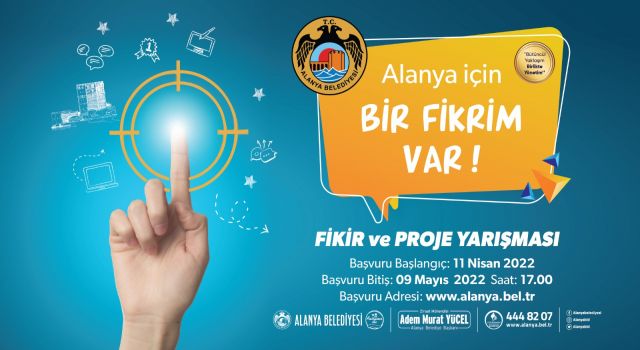 Bütüncül yaklaşım, birlikte yönetim anlayışı ile farklı fikir ve bakış açılarını önemseyen Alanya Belediyesi, Alanya’nın gelişmesi, yenilenmesi için fikir ve proje yarışması düzenliyor. ‘Alanya İçin Bir Fikrim Var’ Yarışması ile katılımcılar, fikir ve projelerini Alanya Belediyesi’ne sunacak. Seçici kurul üyeleri en iyi fikir ve projeyi seçecek ödüllendirecek. Yarışma kapsamında birinciye 10.000 TL, ikinciye 7.500 TL, üçüncüye 5.000 TL ve Jüri Özel Ödülü ile Lansman Ödülü verilecek. Yarışma başvuruları 11 Nisan 2022 tarihinde başladı ve 9 Mayıs 2022 tarihine kadar sürecek. Yarışmanın kazananları Alanya Belediyesi web sitesi ve sosyal medya hesaplarından duyurulacak.